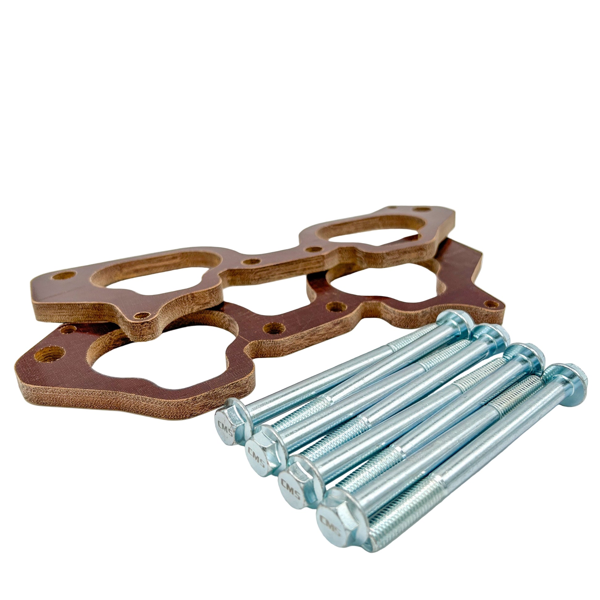 Our phenolic spacers are CNC machined for precise fitment and quality control, ensuring perfect alignment and sealing. The kit also includes custom CMS bolts engineered to compensate for the combined thickness of the spacer and gaskets, guaranteeing proper installation torque and fit.