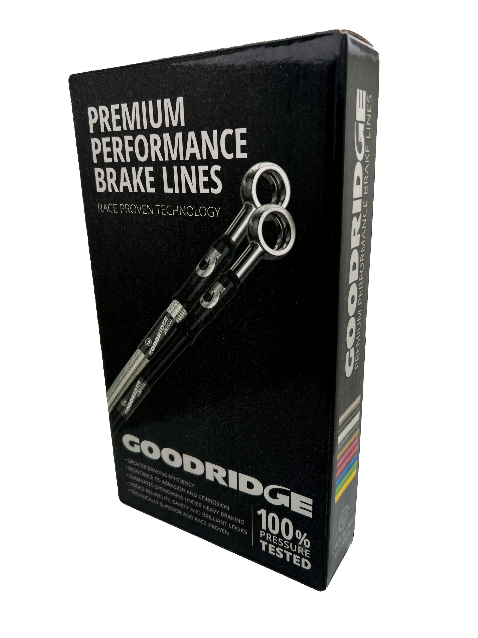Explore the Goodrich G-Stop Stainless Steel Brake Lines, ideal replacements for your factory brake lines. Engineered to eliminate flex and expansion under pressure, these brake lines ensure a swift response directly from the brake pedal to your calipers. Upgrade your braking system with the Goodrich G-Stop Stainless Steel Brake Lines for enhanced precision and responsiveness, delivering a superior driving experience.