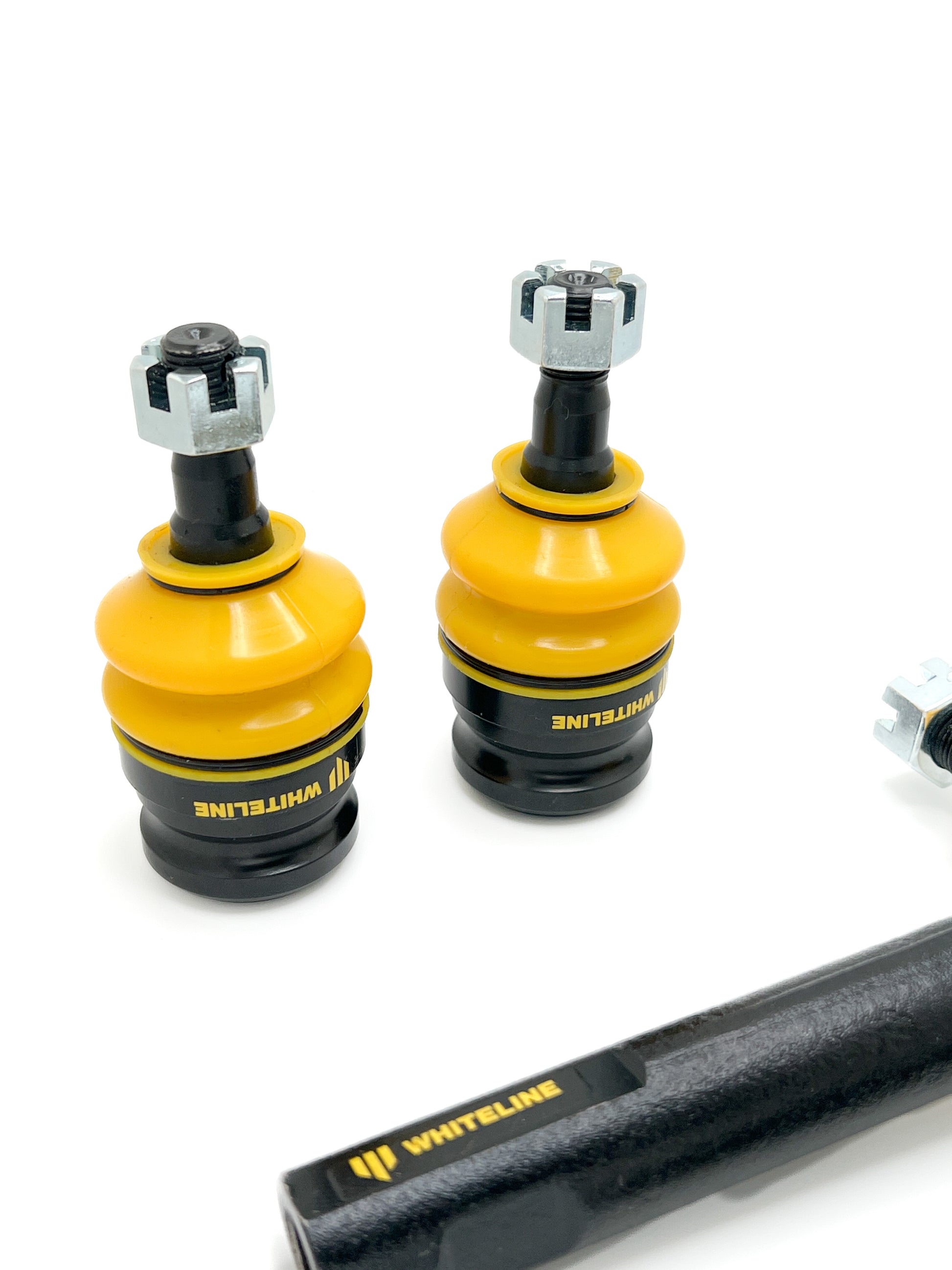 A must for lowered vehicles, Whiteline roll center and bump steer correction kits are designed to correct roll center geometry using specially engineered ball-joints and tie rod ends. Raising the front roll center results in a substantial increase to front roll resistance and a significant reduction in suspension compression of the outside front wheel during cornering. The result is more even weight distribution and improved tire contact ultimately improving front end grip and cornering speeds.